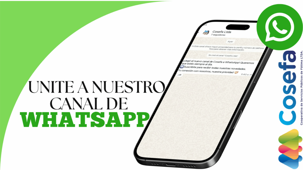 • Es Unidireccional: El canal está diseñado solo para difusión de información, por lo que únicamente Cosefa Ltda podrá enviar mensajes.